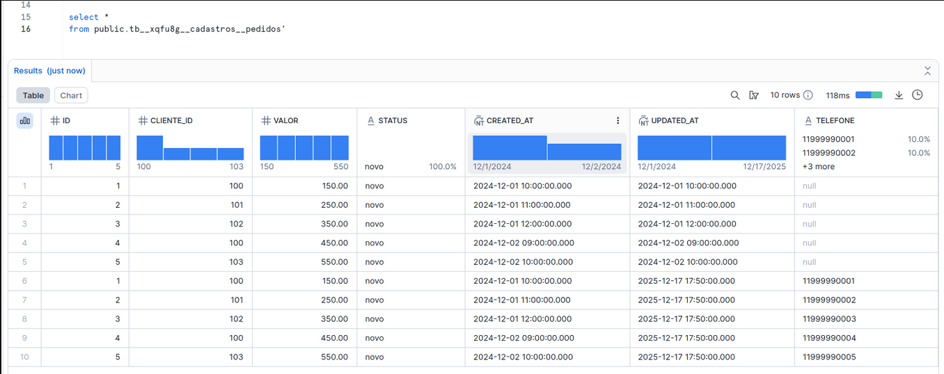 WHERE updated_at >= '2025-12-17 17:50:00.000';Passo 7: Re-executar a pipeline